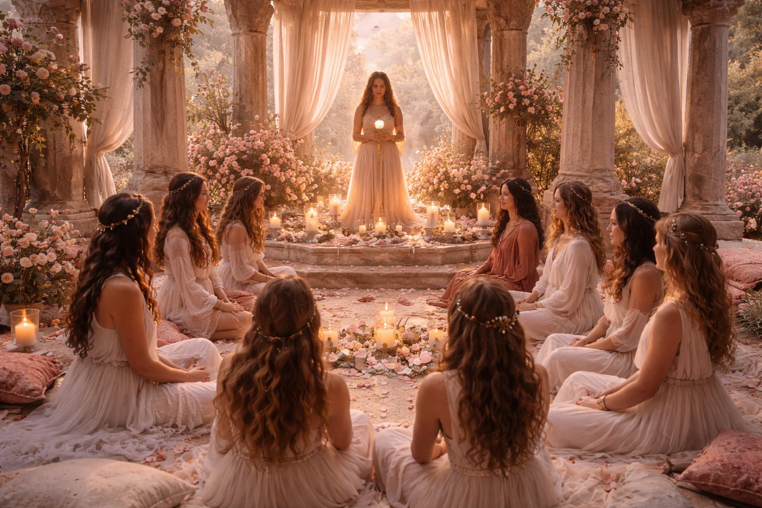 Divine Feminine Awakening is a ceremonial initiation, held in a small, curated container where depth, beauty, rest, and transformation coexist.